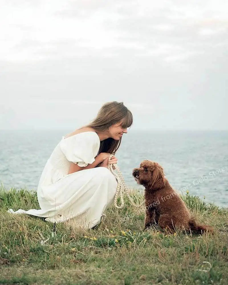 Boho Inspired Shirred Bust Cotton Dress – Puff Sleeve Elegant Summer Dress for Women
